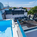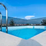 A vendégek pihenhetnek a teraszon, és ha úszni támad kedvük, használhatják a kinti úszómedencét.